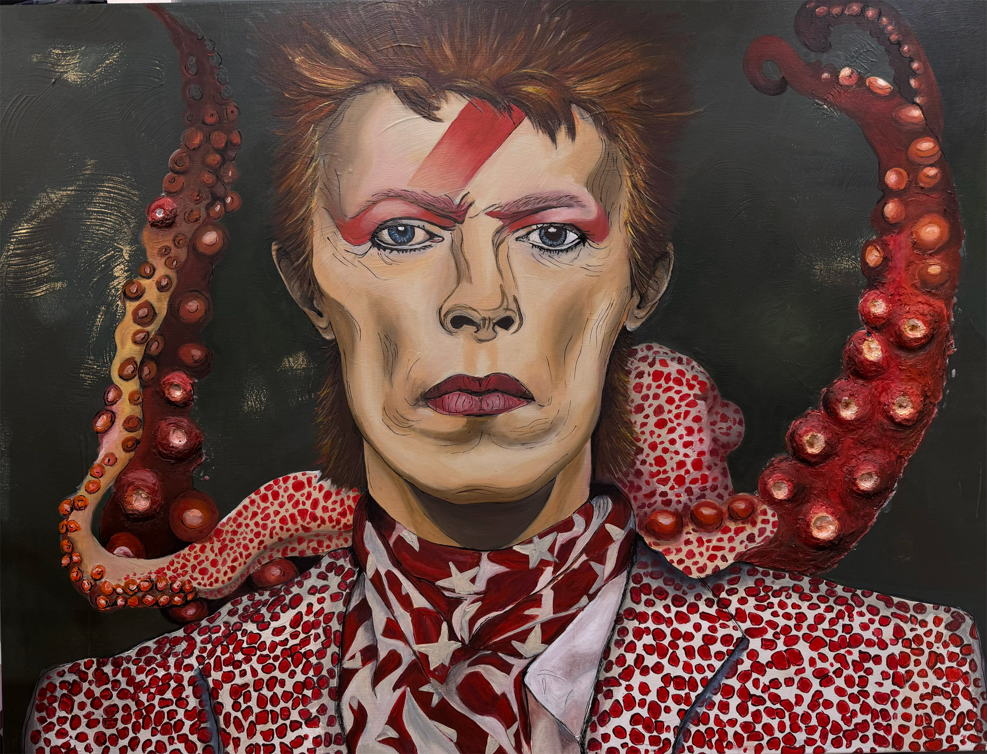 This portrait merges Bowie’s androgynous brilliance with the deep-sea creatures that inspire my work. Bowie has always represented that in-between space to me: between masculine and feminine, earth and cosmos, human and myth. This XL edition exists to honor that expansiveness.